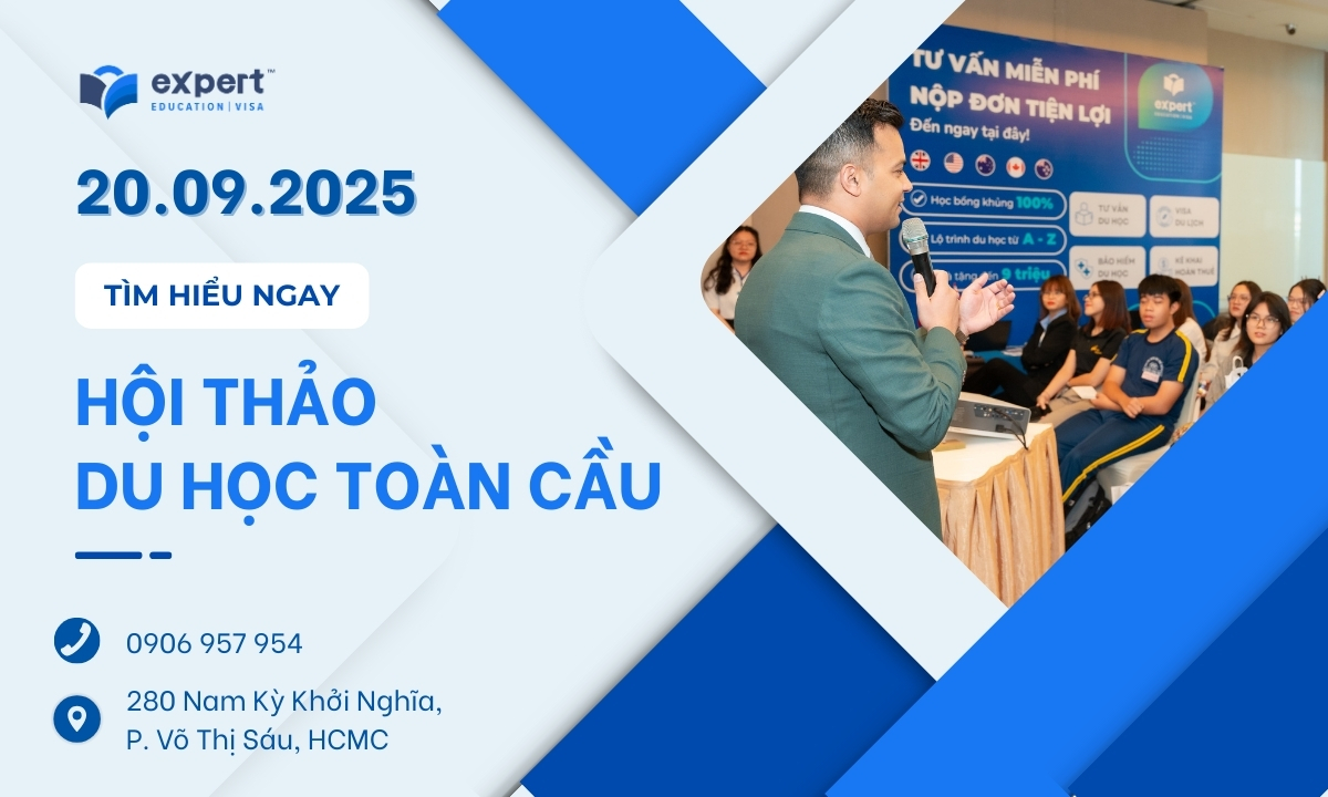 Xem nhanh Bạn muốn biến giấc mơ du học thành sự nghiệp toàn cầu? Hãy bắt đầu tại Hội thảo Du học Toàn cầu 2025 – Global Study Seminar 2025 với hơn 40 trường và nhiều quà tặng hấp dẫn. Hội thảo Du học Toàn cầu 2025, do EEVS Vietnam (Expert Education) tổ chức, chính là cánh cửa để biến ước mơ ấy thành hiện thực. Khác với những buổi tư vấn du học thông thường, Hội thảo Du học Toàn cầu 2025 mang đến cho bạn một hành trình định hướng toàn diện – nơi mỗi câu chuyện du học được thiết kế như một lộ trình phát triển sự nghiệp bền vững. Bạn sẽ không chỉ được cập nhật học bổng mới nhất từ các trường hàng đầu thế giới, mà còn được chia sẻ về xu hướng ngành nghề toàn cầu. Điểm đặc biệt là mọi thông tin đều được cá nhân hóa dựa trên năng lực, tài chính và mục tiêu tương lai của bạn. Đây chính là cách để mỗi người tham dự không chỉ “học để ra nước ngoài”, mà còn học để mở rộng cánh cửa sự nghiệp, xây dựng tương lai vững chắc trên con đường quốc tế. Vậy điều gì khiến hàng trăm học sinh, phụ huynh mong chờ sự kiện này mỗi năm? Kéo xuống ngay để khám phá những điểm nhấn đặc biệt và ưu đãi độc quyền chỉ có tại Hội thảo Du học Toàn cầu 2025! Bạn đang tìm học bổng để giảm chi phí du học Úc và tối ưu lộ trình 2025? Tại Hội thảo Du học Toàn cầu 2025, hơn 40 trường đại học và học viện hàng đầu Úc sẽ mang đến các gói học bổng hấp dẫn – lên đến 50% học phí toàn khóa, áp dụng cho cả bậc Cử nhân và Thạc sĩ. Đây không chỉ là hỗ trợ tài chính, mà còn là cơ hội thực tập, việc làm và định cư quốc tế mà ít nơi nào chia sẻ chi tiết như tại sự kiện này. Dành riêng cho khách ký hợp đồng tại sự kiện: Dành cho khách đến Check-in: “Dành cho những ai đang sẵn sàng viết tiếp ước mơ du học của mình!” Global Study Seminar 2025 là sự kiện được thiết kế riêng cho những ai đang ấp ủ kế hoạch vươn ra thế giới. Dù bạn là học sinh trung học, sinh viên đại học hay phụ huynh đang tìm lộ trình tương lai cho con, hội thảo sẽ mang đến những thông tin thiết thực và định hướng rõ ràng. Đây cũng là cơ hội để các bạn học sinh, sinh viên tìm kiếm học bổng giá trị, khám phá cơ hội học tập tại những quốc gia hàng đầu. Không chỉ dừng ở việc cung cấp thông tin, sự kiện còn giúp tối ưu hóa lộ trình du học, phù hợp với năng lực hiện tại và mục tiêu dài hạn của từng người. Bạn sẽ nhận được tư vấn 1:1, giải đáp thắc mắc về ngành học, học phí, visa và cả cơ hội định cư sau tốt nghiệp. Nếu bạn đang muốn biến giấc mơ du học thành hiện thực, đây chính là bước khởi đầu. Global Study Seminar 2025 sẽ diễn ra vào: Hình thức tham dự: Hoàn toàn miễn phí, số lượng chỗ giới hạn. Global Study Seminar 2025 không chỉ là một hội thảo thông tin thông thường, mà là bước đệm chiến lược giúp bạn chinh phục lộ trình du học – định cư toàn cầu. Với mạng lưới đối tác từ Úc, New Zealand, Canada, Mỹ và Anh, chương trình mang đến góc nhìn toàn diện về học bổng, ngành học xu hướng và cơ hội nghề nghiệp quốc tế. Đặc biệt, mỗi khách tham dự sẽ nhận được định hướng cá nhân theo hồ sơ học tập, mục tiêu nghề nghiệp và ngân sách riêng, đảm bảo không ai rời hội thảo với một kế hoạch chung chung. Số lượng chỗ tham gia có hạn. Đăng ký ngay hôm nay để giữ chỗ, nhận ưu đãi chỉ có tại sự kiện và bắt đầu hành trình du học bài bản – thông minh – tiết kiệm hơn bao giờ hết!